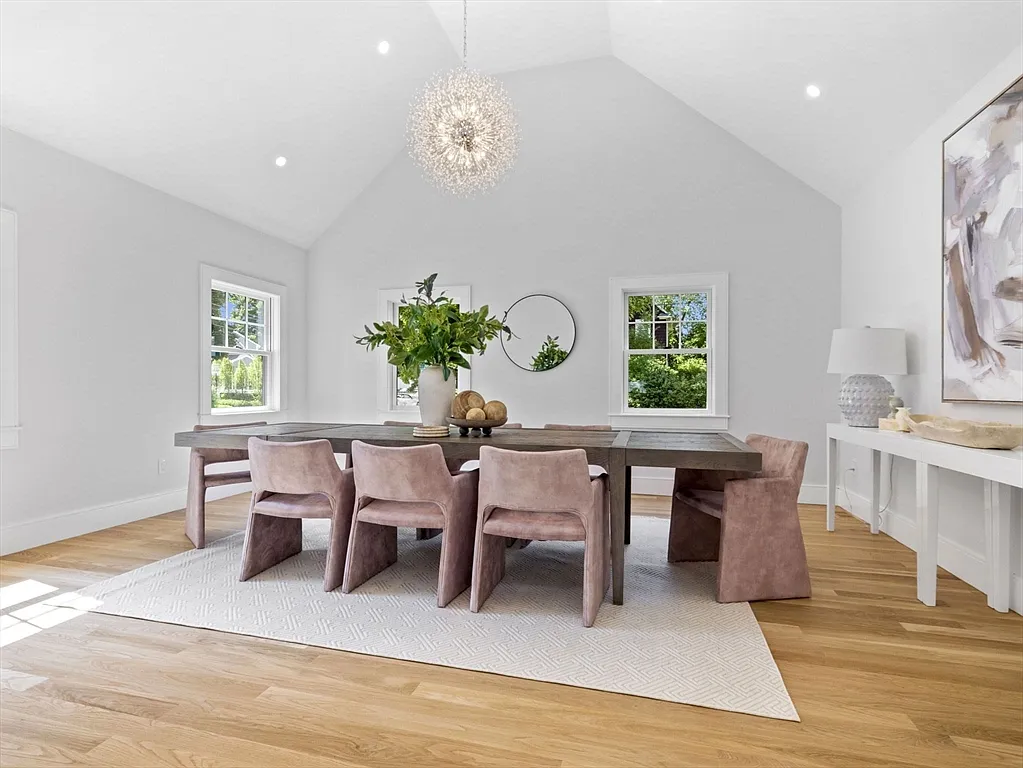 As you step into the sun-drenched foyer, you are immediately welcomed by an open and versatile floor plan that gracefully transitions into the expansive family and dining areas, accentuated by soaring ceilings that amplify the sense of space and luxury. This seamless flow ensures that each room is both distinct yet harmoniously integrated, perfect for both lively gatherings and tranquil relaxation.